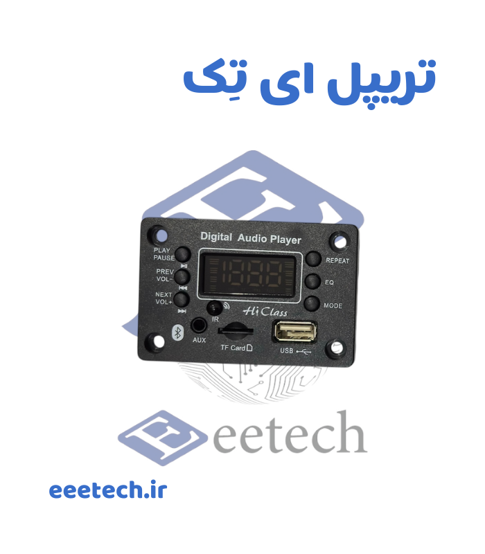 The G016 MP3 Player Module without Amplifier with Small Control is a compact, multi-purpose audio playback device for upgrading old audio systems or DIY projects. Supporting Bluetooth, USB, microSD, and FM radio, it plays MP3/WMA/WAV files and is perfect for converting cassette/CD players to digital. With 5-12V DC operation and remote control, it’s great for cars, home speakers, and portable devices. Without built-in amplifier, connect output to external amp for quality sound. Available with warranty at EEETECH.IR.