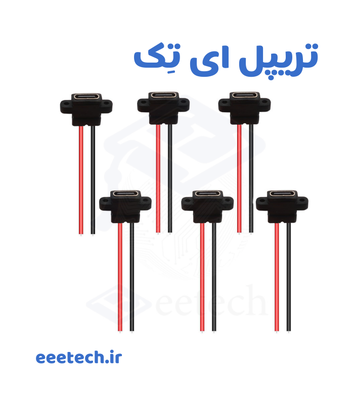 کانکتور مادگی USB Type-C جا پیچدار سیمدار یک قطعه کاربردی برای انتقال برق و دیتا است که با طراحی ویژهی جای پیچ برای نصب روی پنل یا جعبهها عرضه میشود. این مدل دارای سیمهای لحیمشده آماده برای اتصال سریع است و به دلیل بدنهی مقاوم، در پروژههای صنعتی و DIY محبوبیت زیادی دارد.